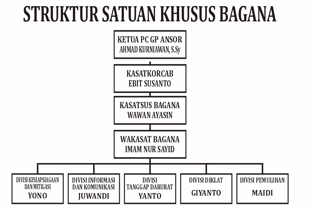 BAGANA memiliki struktur organisasi yang jelas dan berjenjang, guna memastikan setiap tugas berjalan efektif dan bertanggung jawab.